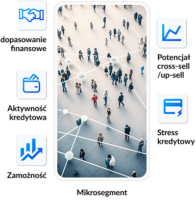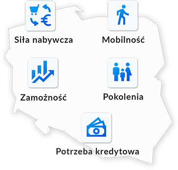 statystyczny profil ludności – ich potrzeb i zachowań w precyzyjnie zdefiniowanych obszarach (np. siatka grid 500×500 m, gmina, powiat, terytorium, województwo) – siła nabywcza, skłonność do zakupu produktów kredytowych, mobilność, aktywność kredytowa, za